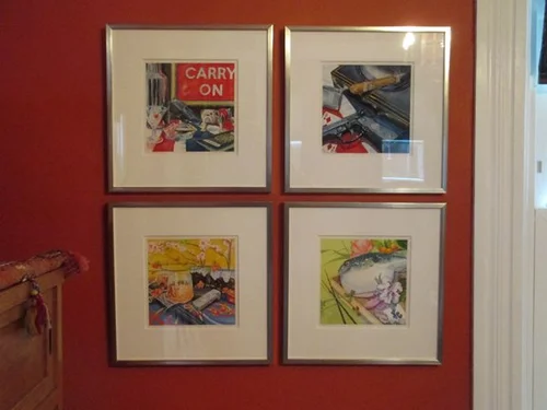 For “Official Secrets” I was motivated by the Obit in The Times (of London) that appears at the end of You Only Live Twice, written by M about the presumed death of Bond at the hands of Blofeld (Dr. Shatterhand) and Irma Bunt. As my narrative describes, M recounts Bond’s early history as a youth, his time (very scandalous and short) at Eton, and his subsequent days at Fettes College. The self-twitting irony of Fleming is evident when M writes about the popularization of Bond’s exploits by a personal friend and how these stories were almost in violation of the Official Secrets Act - hence the name of the painting. I have continued the contemporization of Bond with his collection of first edition Fleming novels that Bond would have undoubtedly acquired, the recent Bond continuation novel by Anthony Horowitz - Trigger Mortis, a bookmark from Artistic Licence Renewed and other elements that Bond has on hand in his flat.